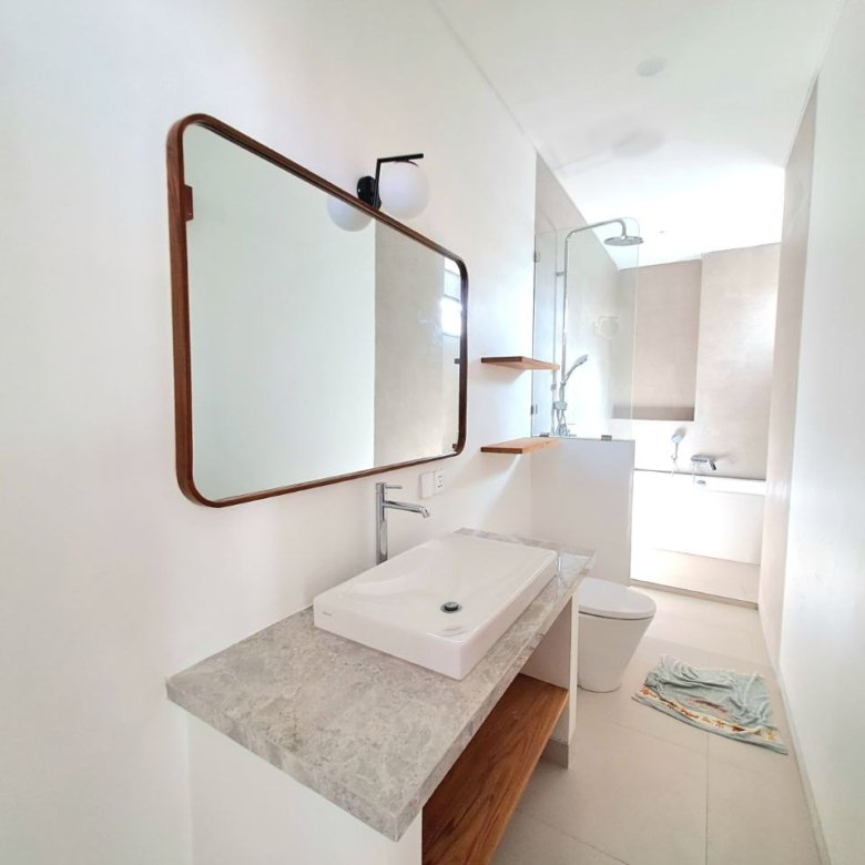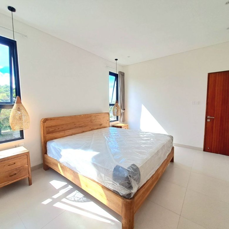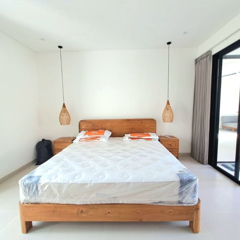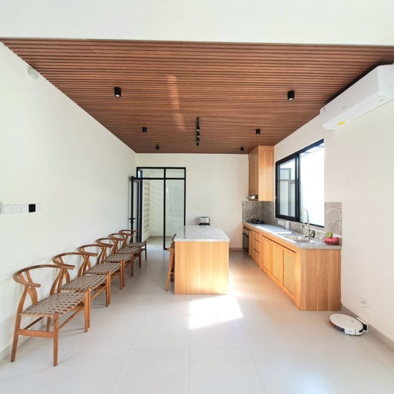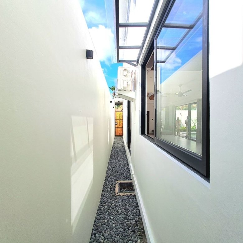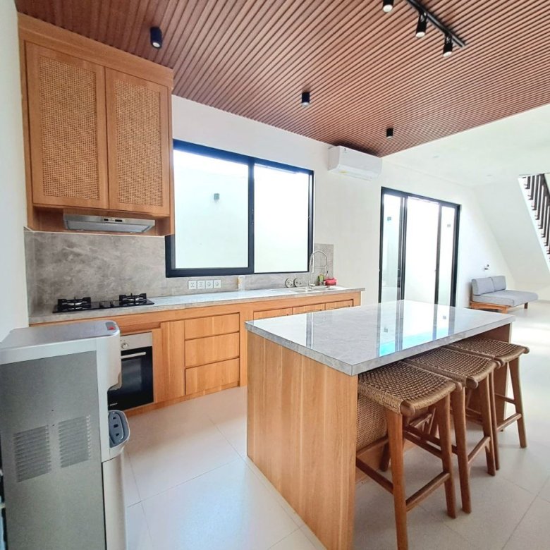 This brand-new three-bedroom villa, furnished and designed in a modern minimalist style, is now available for yearly rental. It features a spacious enclosed living room and kitchen area. Situated in the highly sought-after heart of Pererenan, this property offers convenient access for a delightful family stay. The villa is approximately 1.3 kilometers from Pererenan Beach, which is just a 2-minute bike ride away. It is also within walking distance to several renowned restaurants and cafes in Pererenan, such as Thierry Pererenan Canggu, Gimme More Restaurant, Touche Cafe, and Bastardo Bali Restaurant. The villa includes a 3×6 meter swimming pool with a guest toilet and is pet-friendly.