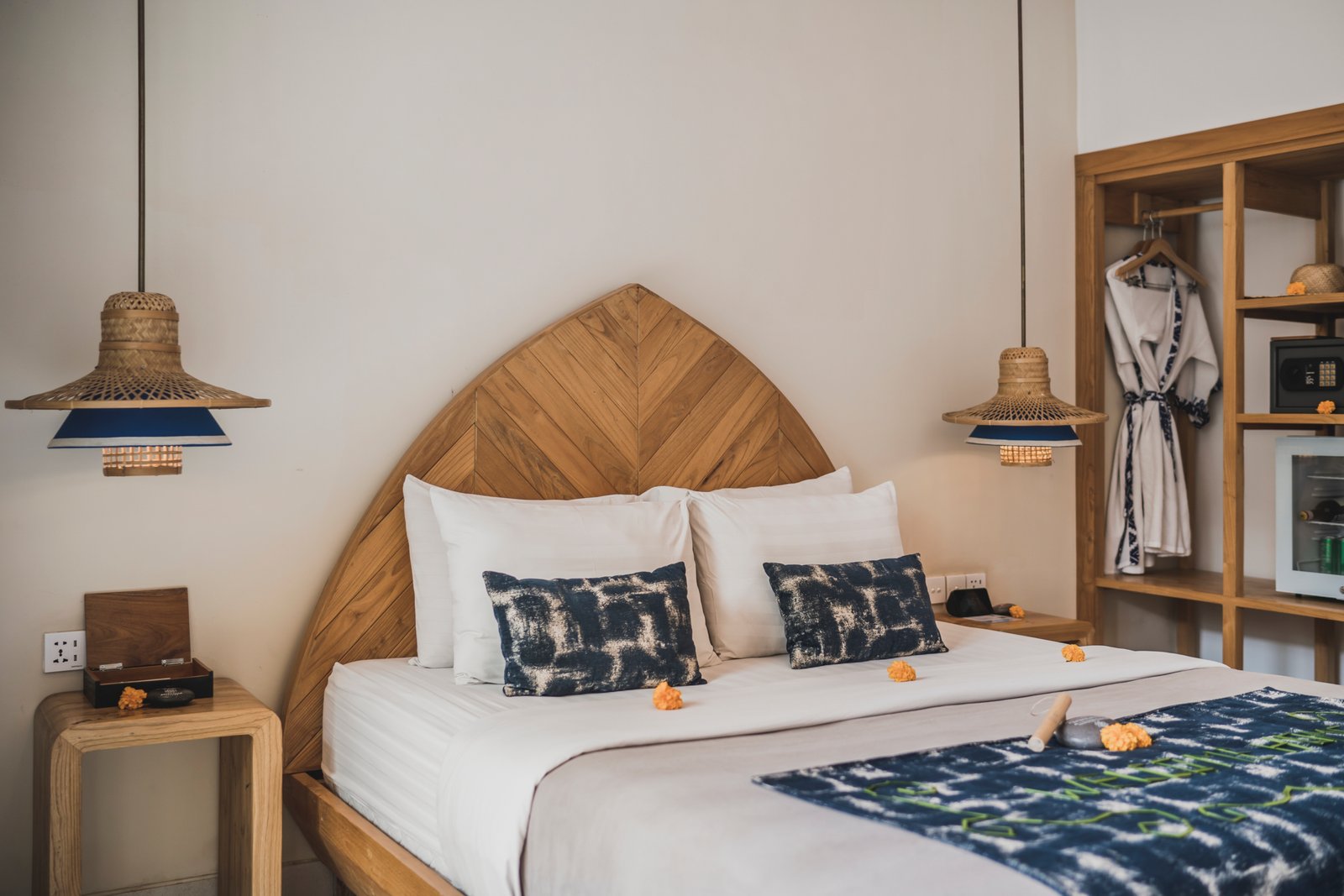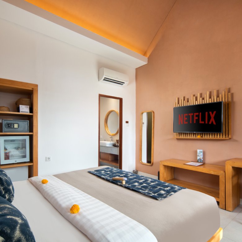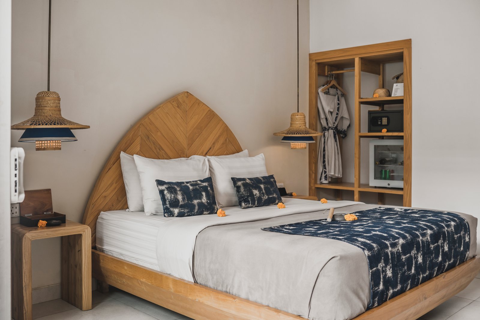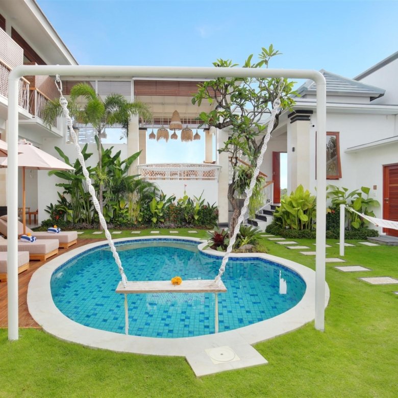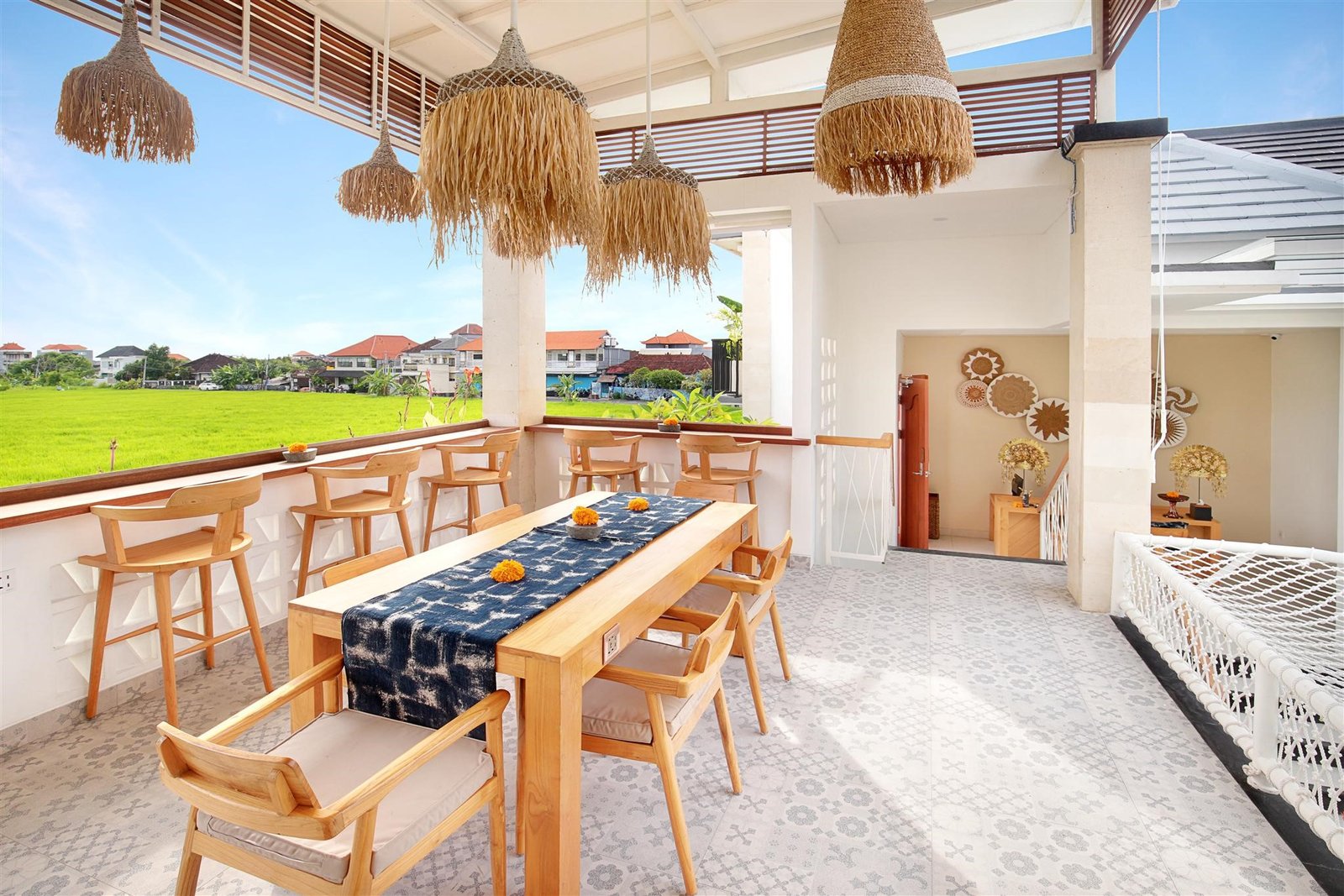 This modern resort in the prime Berawa area offers suite rooms available for monthly and yearly rent, providing a sophisticated living experience with access to a shared swimming pool. The property features a contemporary design that allows residents to enjoy the tropical atmosphere from an elevated perspective. Located in a high-end residential neighborhood, the villa is conveniently close to Berawa Beach and surrounded by a variety of popular cafes and restaurants, making it a perfect choice for those seeking comfort and style in one of Bali’s most vibrant coastal communities. While the individual units do not include a private kitchen or stove to maintain a sleek living space, guests have full access to a spacious open-air shared kitchen and dining area where they can cook and eat while enjoying the beautiful surrounding views.