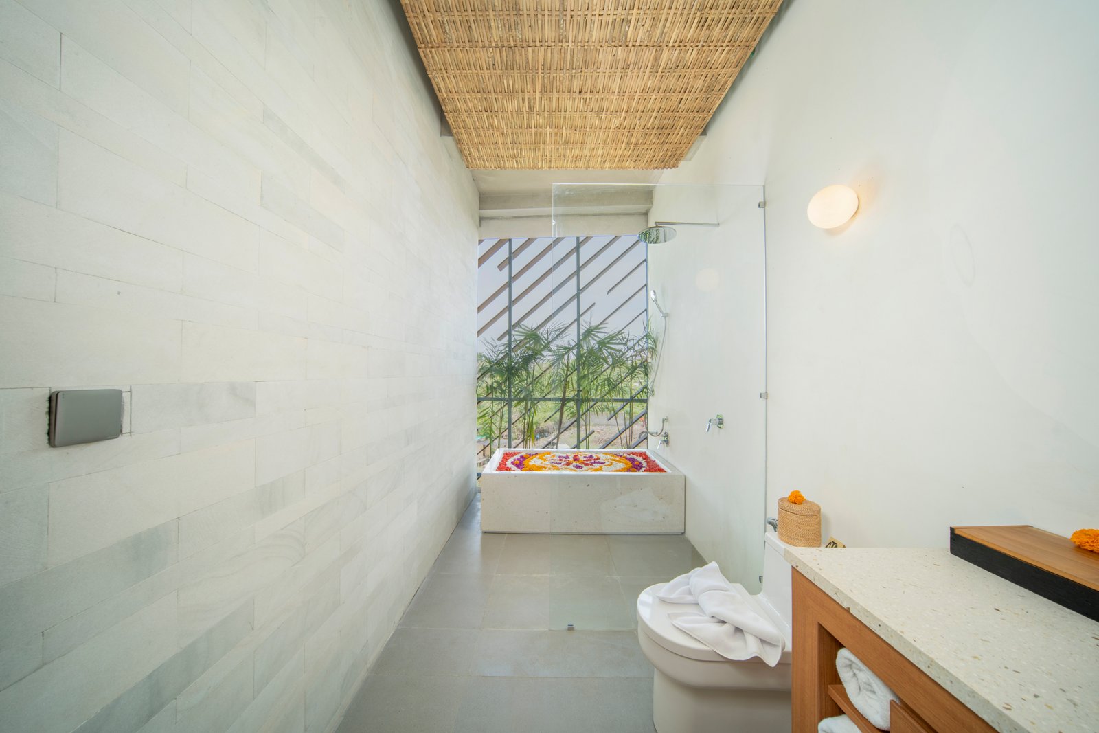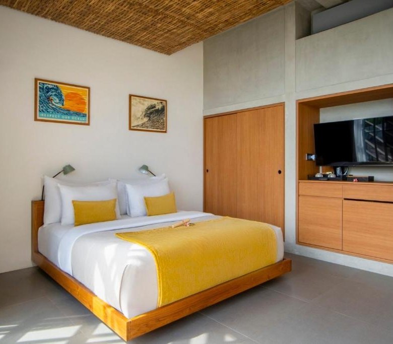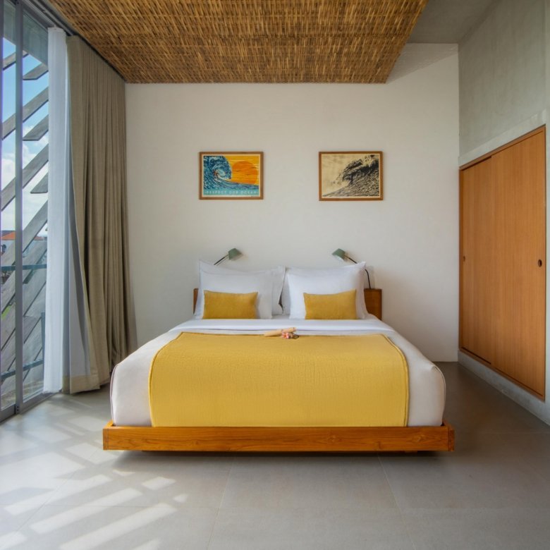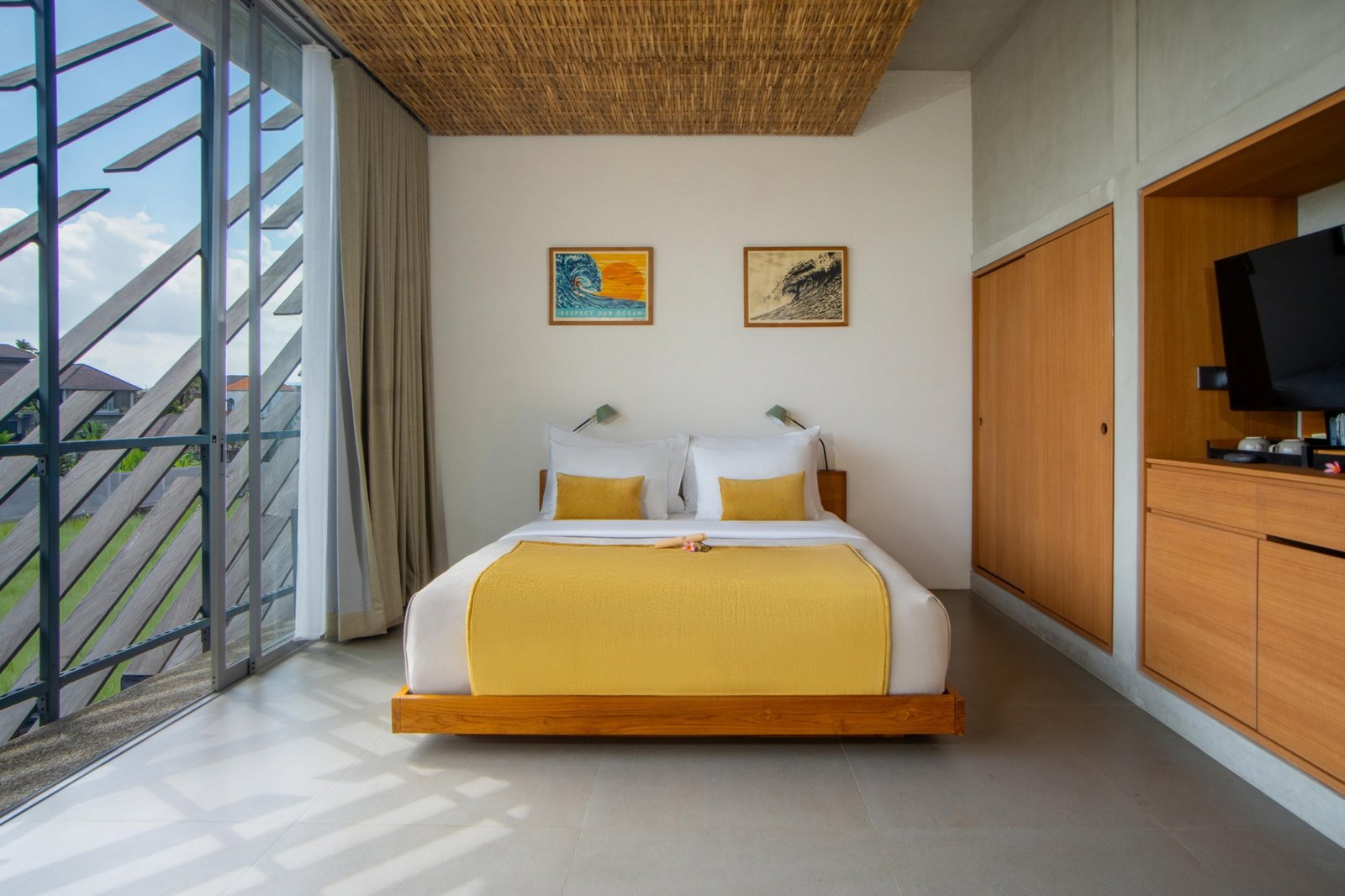 This modern resort in the prime Pererenan area offers suite rooms available for monthly rent, providing a sophisticated living experience with access to a shared swimming pool. The property features a contemporary design and a stunning rooftop pool view, allowing residents to enjoy the tropical atmosphere from an elevated perspective. Located in a high-end residential neighborhood, the resort is conveniently close to Pererenan Beach and surrounded by a variety of popular cafes and restaurants, making it a perfect choice for those seeking comfort and style in one of Bali’s most vibrant coastal communities. Please note that this unit is designed for ultimate relaxation and does not include a kitchen or stove, ensuring a sleek and minimalist living space.