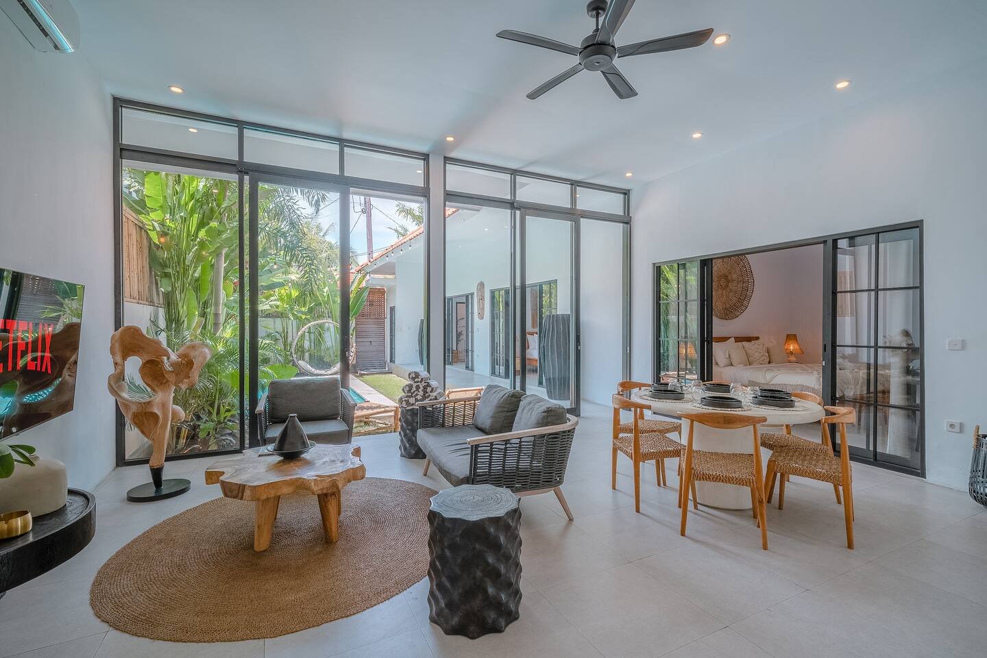 This beautiful 3-bedroom villa offers a perfect blend of modern comfort and tropical charm. Located just a 5-minute ride from Pererenan Beach, the villa is surrounded by trendy cafes like Merch and fitness spots such as Obsidian Gym and Padel, making it an excellent choice for those who enjoy an active lifestyle.