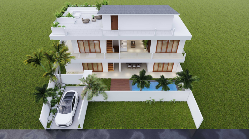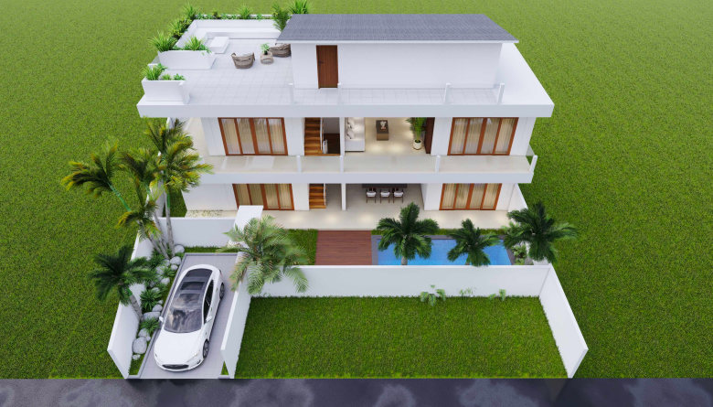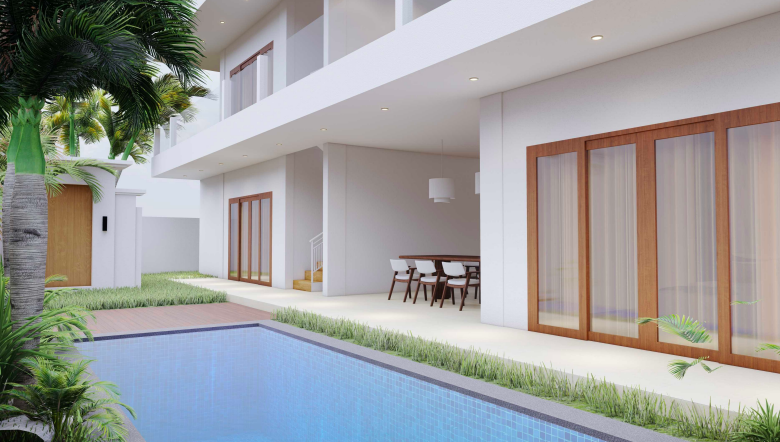 Designed in a modern Balinese style, the 2-level villa comes with a rooftop perfect for enjoying sunsets and features 4 ensuite bedrooms, each with its own bathroom.