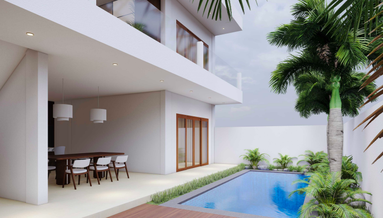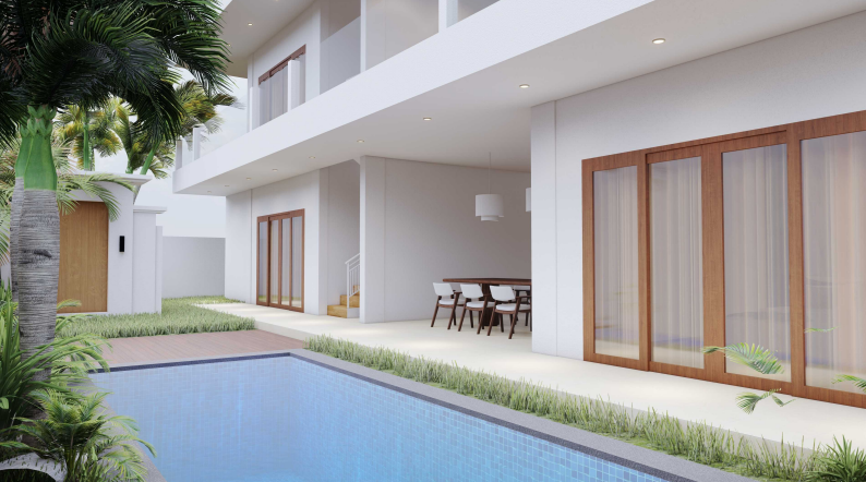 This under-construction villa is expected to be completed within 5 months. It is located in a newly developing area of Cemagi, surrounded by rice fields and only a 5-minute ride to Cemagi Beach.