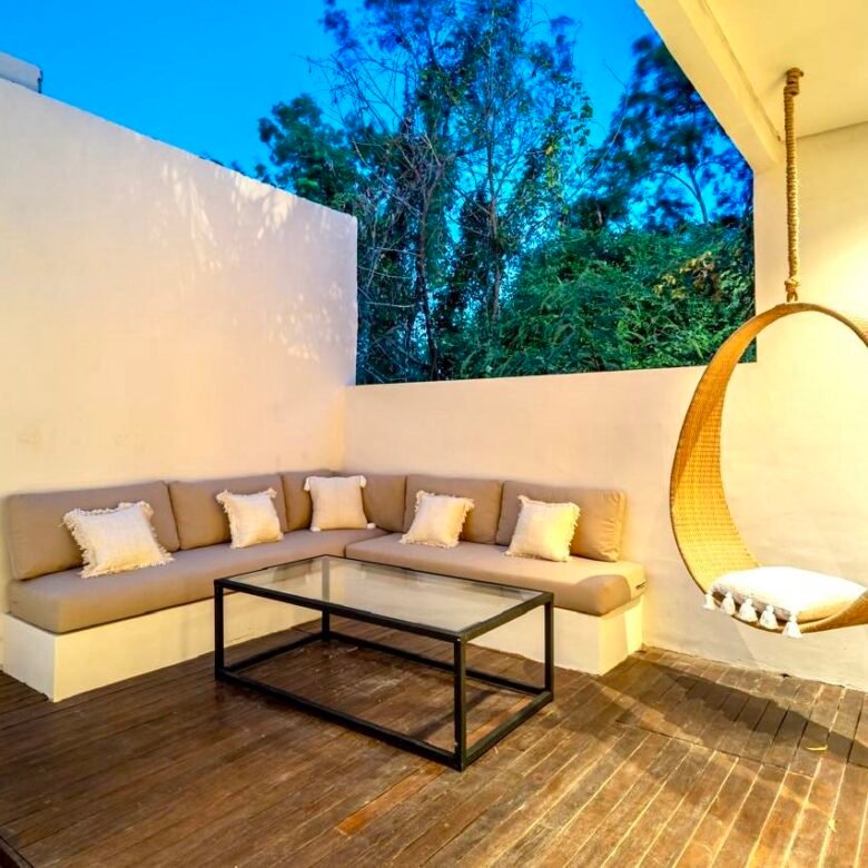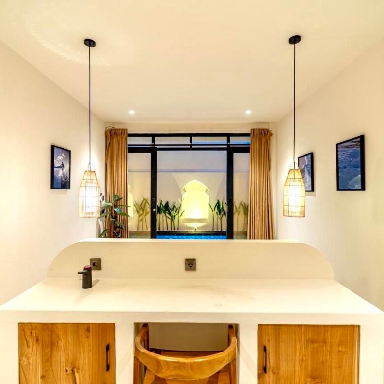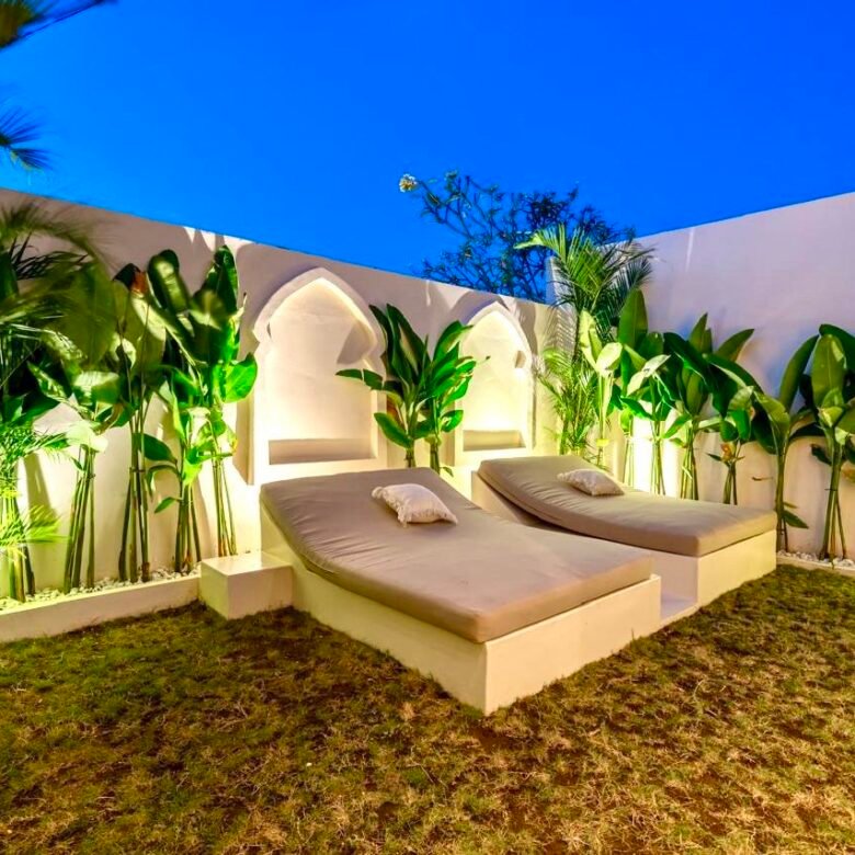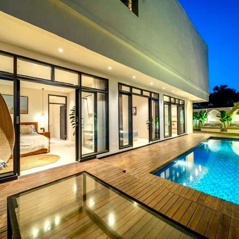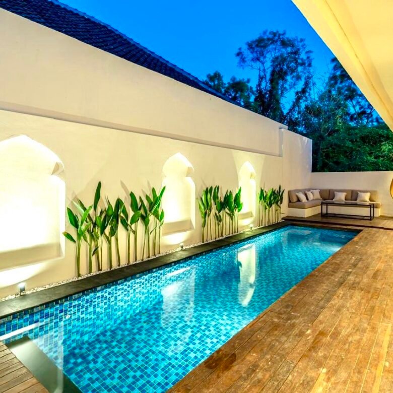 Beyond the villa’s chic interiors, indulge in the luxury of a private swimming pool and inviting outdoor lounging areas.