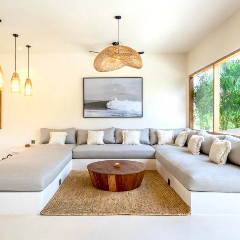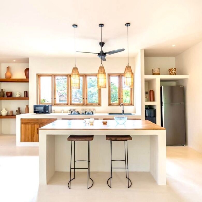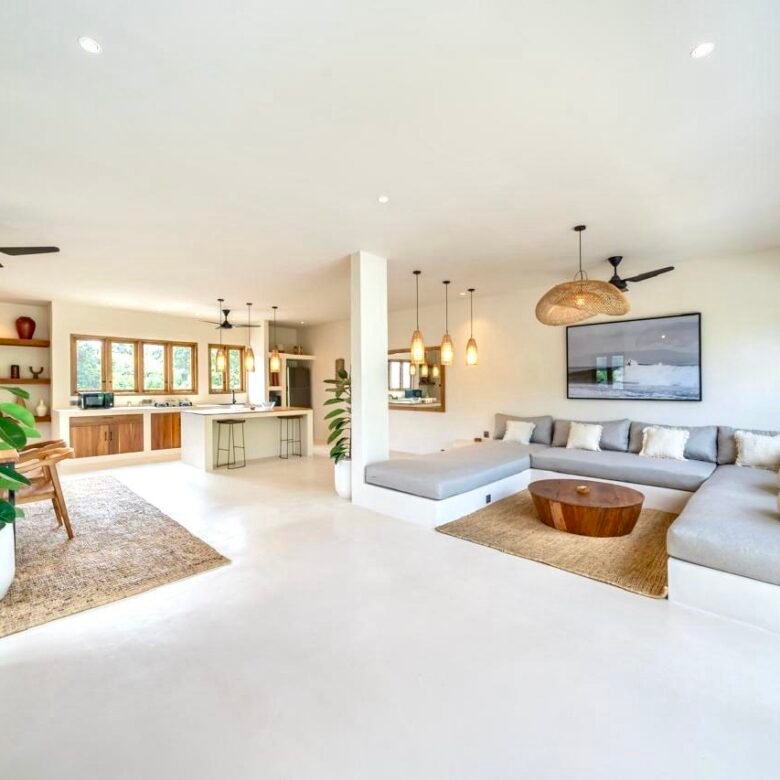 This stunning villa is nestled in the serene Ungasan perfectly blending modern design with full furnishings, it boasts a spacious living room, a well-appointed kitchen, and a dining area.